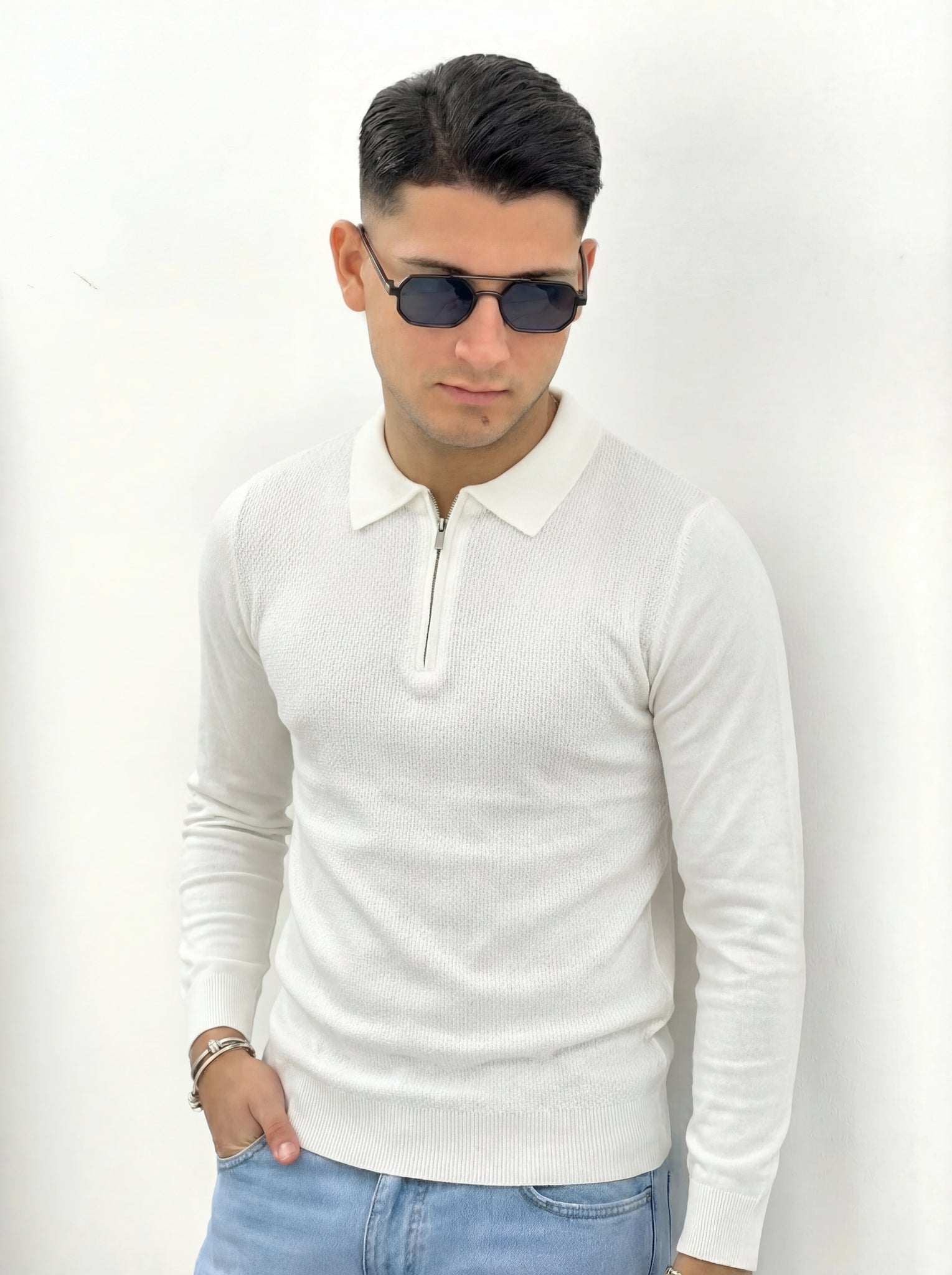 POLO CON ZIP CON TRAMA PIQUET